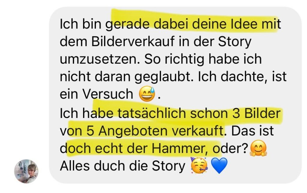 Heute unterstütze Menschen wie dich dabei, Stories zu erstellen, die nicht nur Likes, sondern Umsätze bringen.