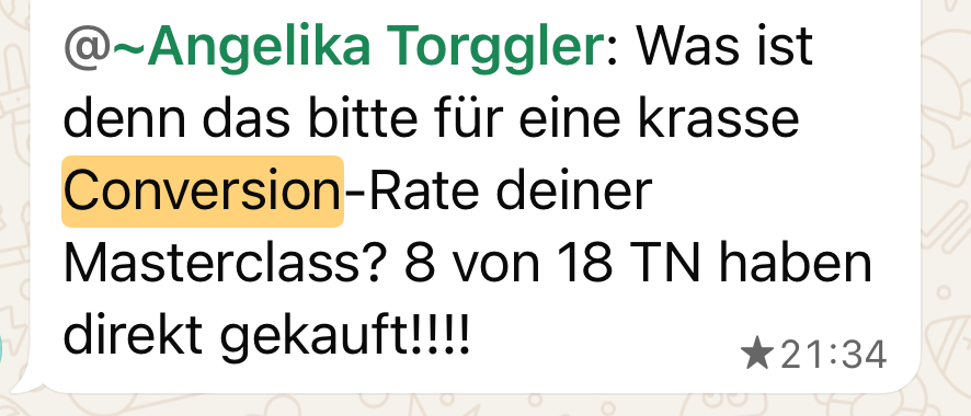 In meinen eigenen Programmen habe ich mit genau diesen Methoden in jedem Launch fünfstellige Umsätze direkt aus Live-Workshops erzielt –